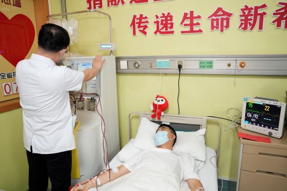 5月28日上午9点10分,伴随着血细胞分离机平稳运转的轻微轰鸣声,采集正式开始。小鑫躺在床上笑着说:“盼了好久终于盼到这一天,我太开心了。”