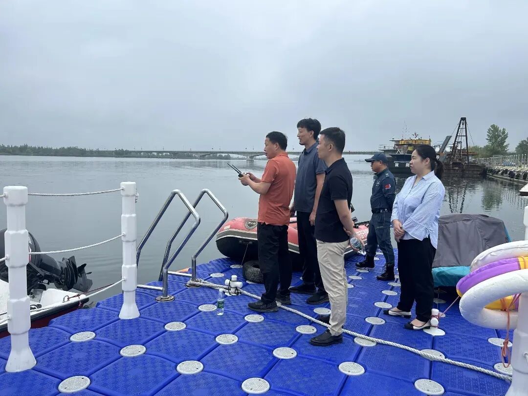 9月5日,调研组转战老河口市,深入汉江水域现场查看市红十字水上救护站建设运行情况。老河口市红十字会党组书记、常务副会长刘丹汇报了救护站项目建设进展,以及日常训练演练、水域巡查救援等工作的开展情况。期间,现场进行无人飞翼救人实战演练,并就救护站项目规范化建设、日常高效运行提出针对性指导意见。