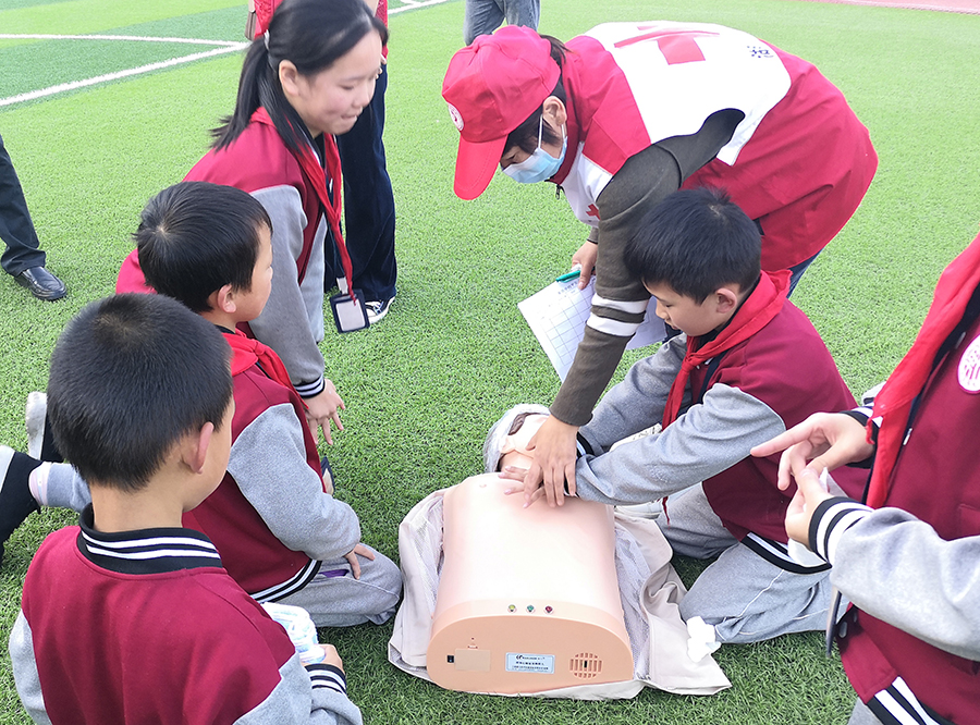 活动中,县红十字应急救护培训师资、县义工协会指导老师为全校师生上了一堂生动的应急救护培训课,现场详细讲解了心肺复苏术等实用应急救护技能与方法,并结合真实案例,具体指导师生进行操作训练。在红十字志愿者和应急救护培训师资的悉心指导下,师生纷纷参与到实操训练中,现场学习氛围浓厚。