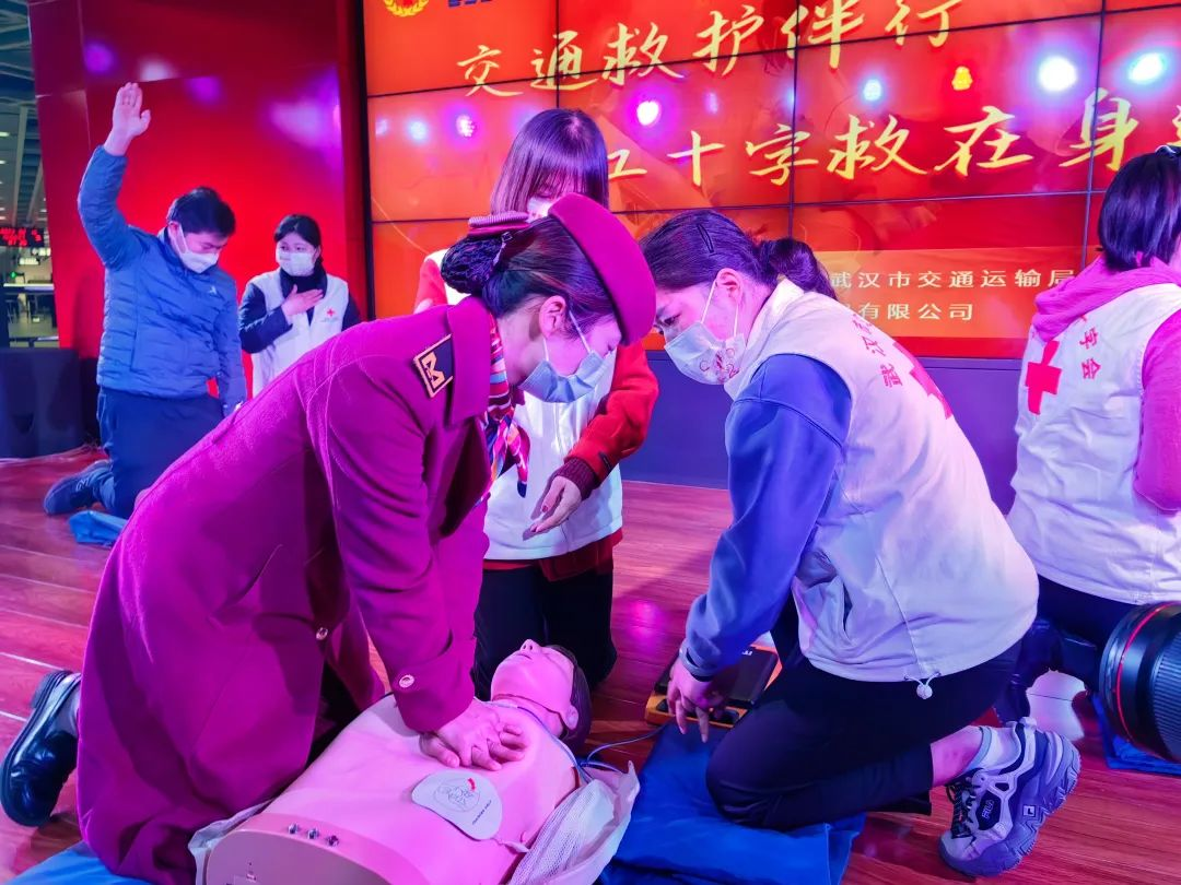 活动现场,武汉市红十字会应急救护志愿者开展了心肺复苏、创伤救护等应急救护技能培训和出行便捷急救包使用指导,旨在提升地铁工作人员和乘客的应急救护能力。