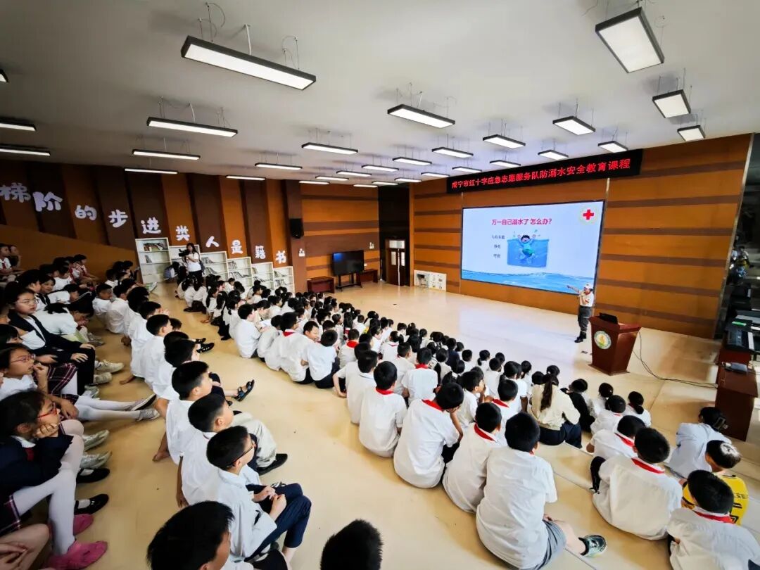 6月3日,咸宁市红十字应急救援志愿服务队走进咸宁市第二实验小学开展防溺水安全教育课程。