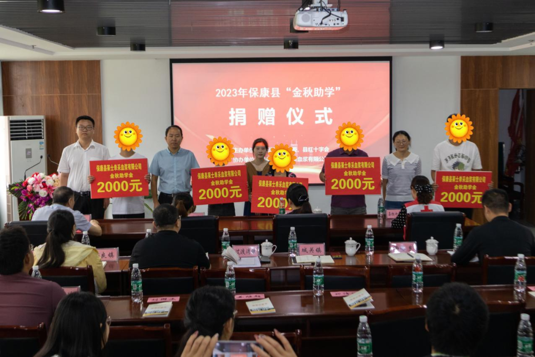 8月29日,襄阳市保康县2023年“金秋助学”活动捐赠仪式在莱士血浆公司举行,保康县副县长张莹参加活动。