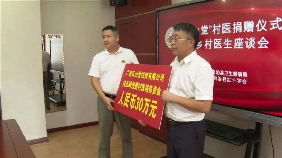 近日,五峰卫健局、县红十字会、广西弘山堂投资有限公司联合举办“弘山堂”村医助学仪式暨乡村医生座谈会。会上,此公司向五峰捐赠30万元,用于本土村医培养。